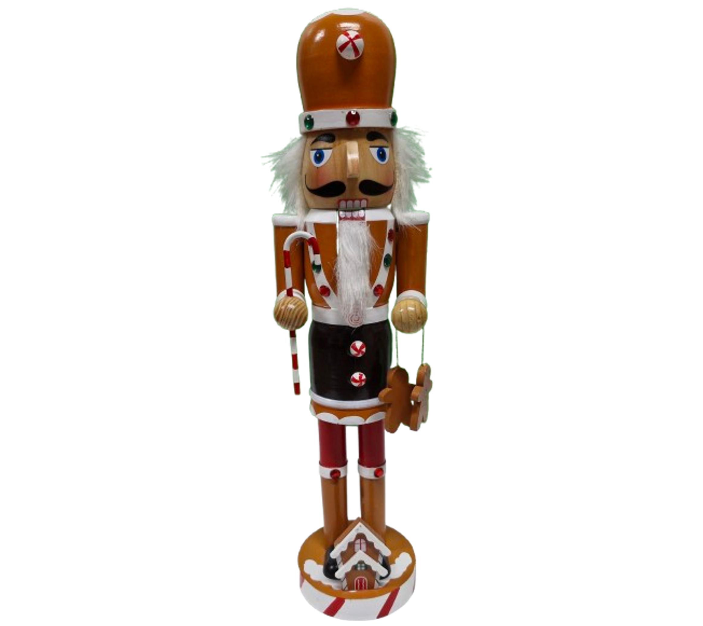 Nutcracker: 38cm | Gingerbread man holding candy cane staff