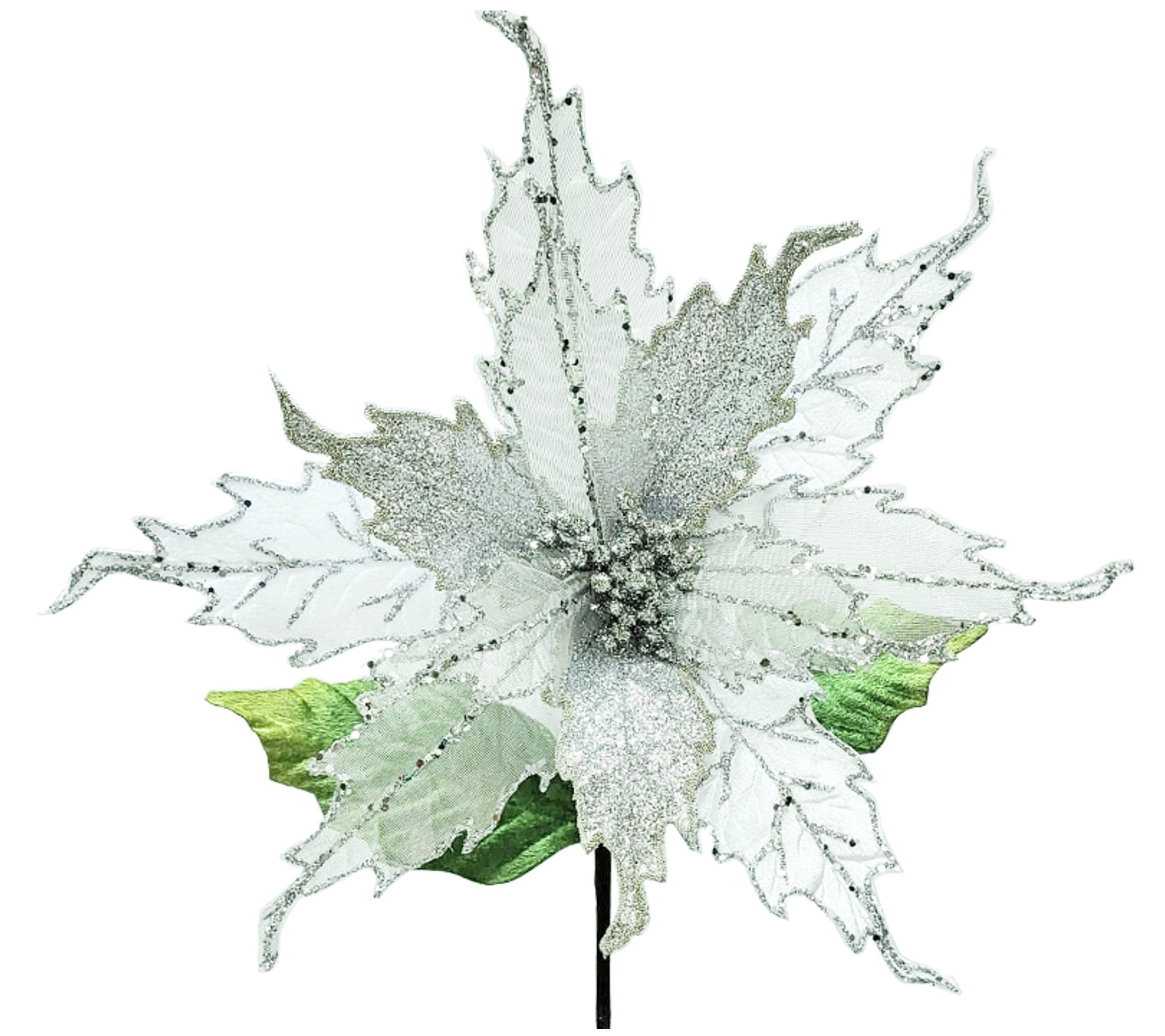 Poinsettia: 30cm | White & Silver