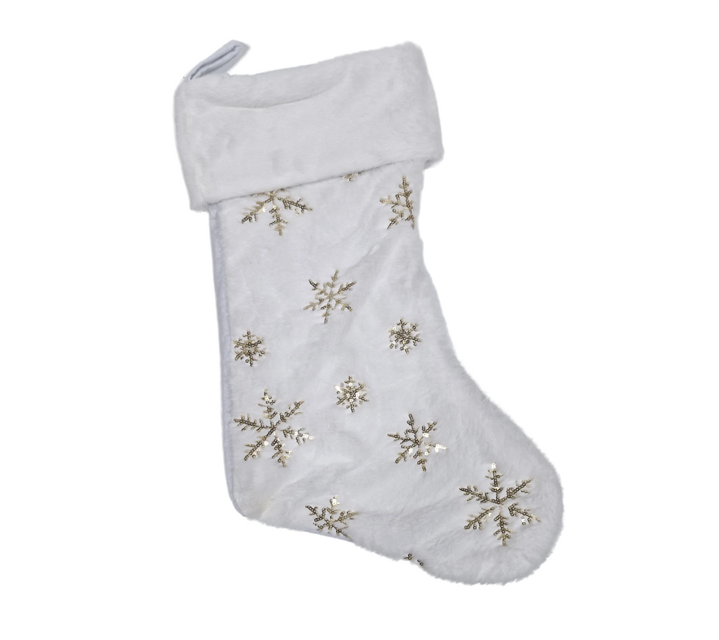 Stocking: 46cm(L) x 28cm(W) | White with Gold Snowflakes