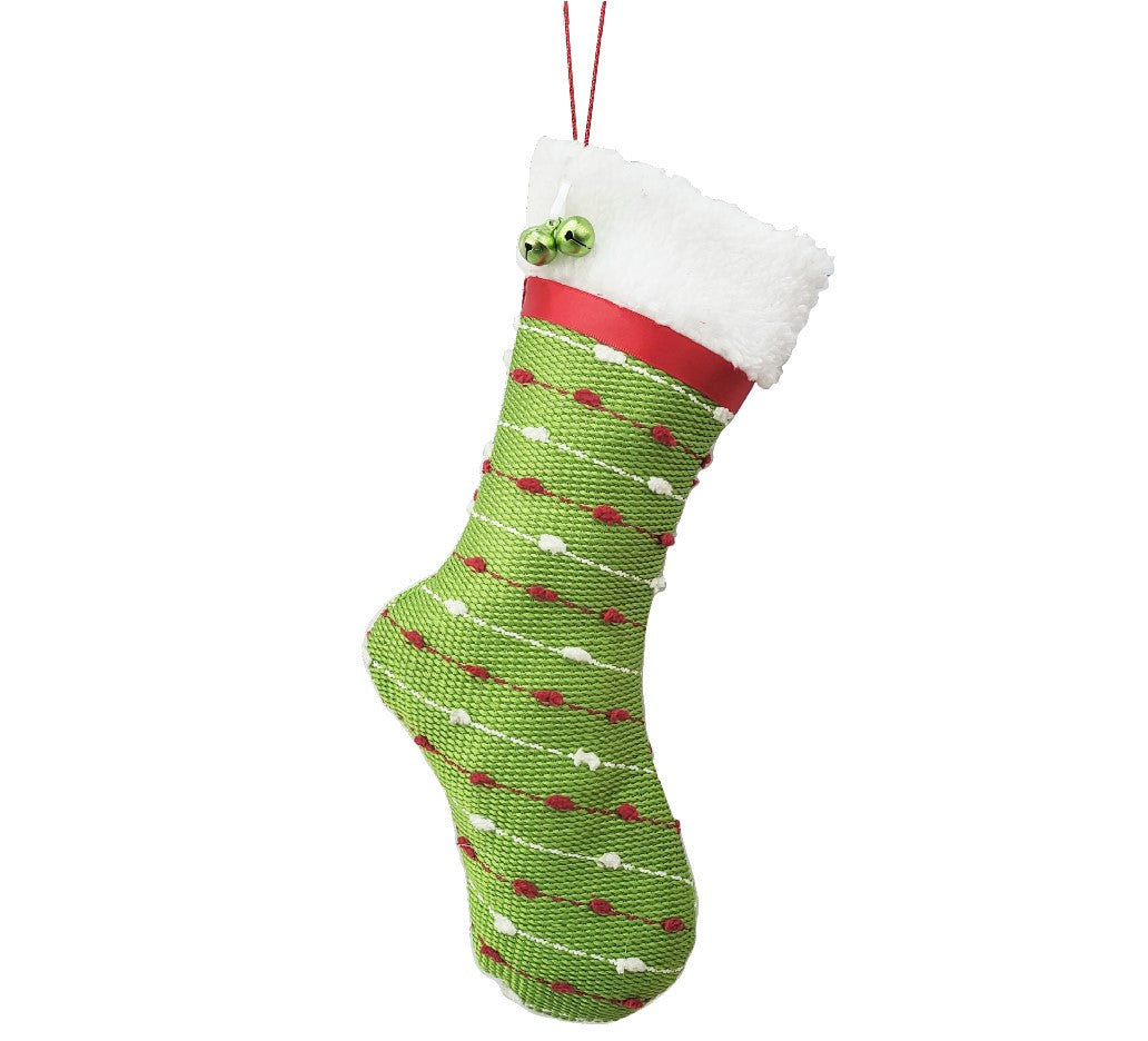 Stocking Ornament: 30cm(L) x 15(W) | Green, white and red