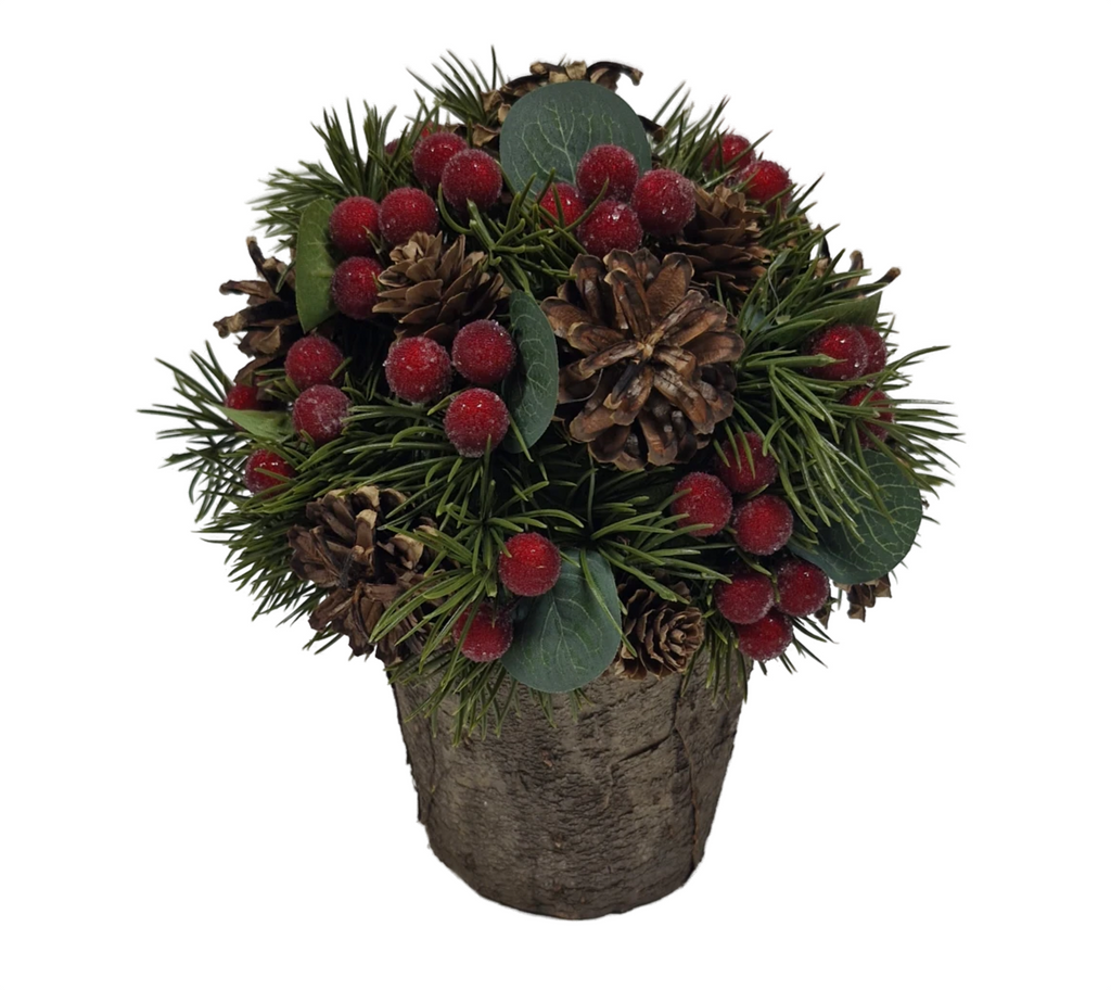 Table Décor: 22cm(H) x 18cm(D) | Frosted Berry & Pine cone tree in pot